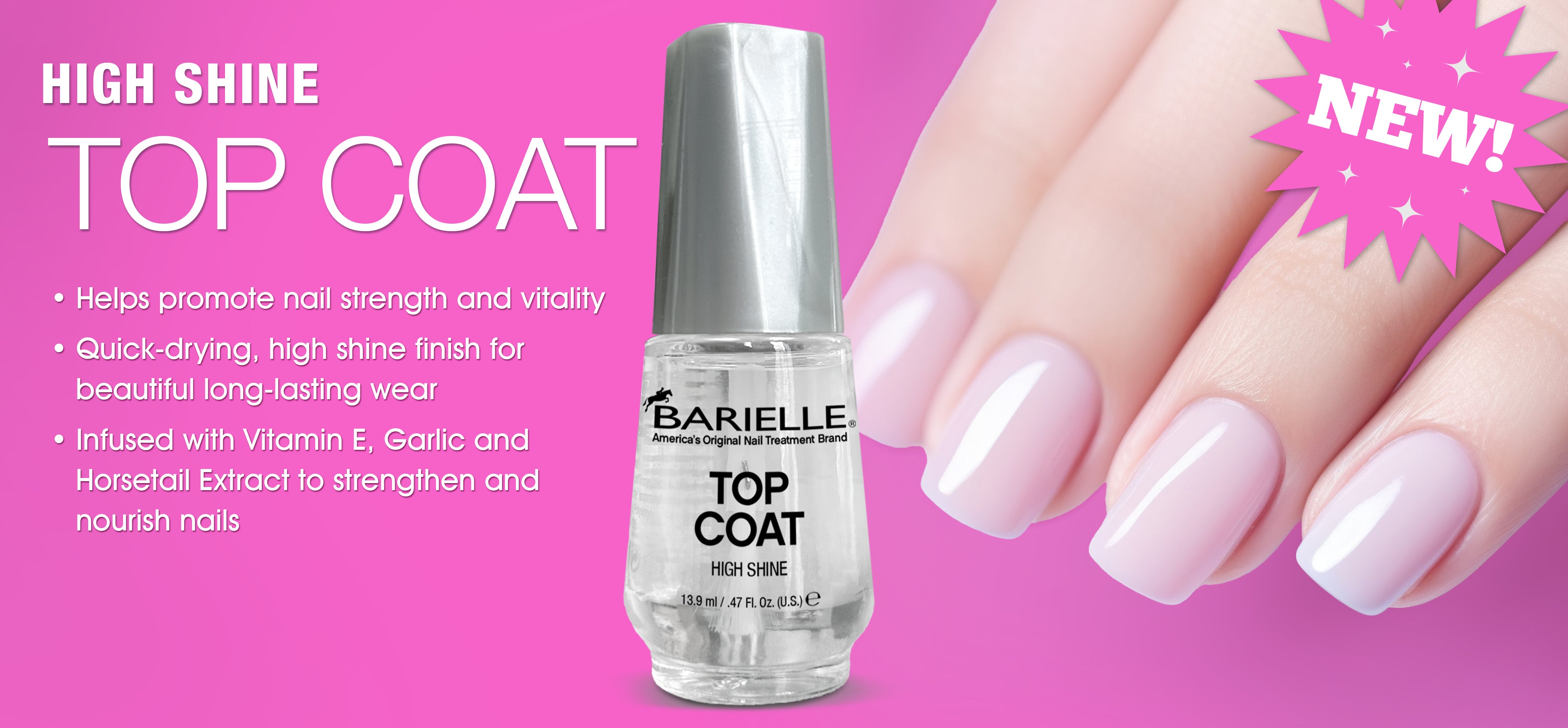 Clear, super fast-drying top coat that provides a protective and glossy finish. Helps protect nail color from chipping and fading, while also giving a smooth, glossy shine to your nails.